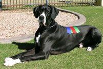 Guidon was the 10th Dane ever and only the 2nd male in the breed to achieve the Utility Dog Excellent title. He was always in the top five for breed rankings, and consistently gained a Delaney ranking. He was still out working in obedience at 8 & in therapy work until 10 years old. Guidon has his TDIA-OV (highest Therapy Dog title) for having done over 150 visits