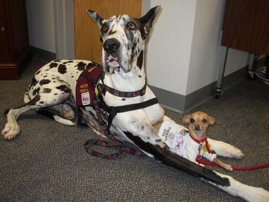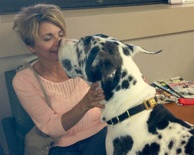 Therapy Danes: From the first generation & now for 5 generations, a large number of our ChromaDanes are certified, working Therapy Dogs. Several are highlighted below: Zorro, Maybelline, Maisey, Zen, Guidon, Mabel, Dare, Wasabi, Vegas, Picabo, Pirate